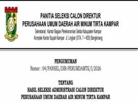 HASIL SELEKSI ADMINISTRASI CALON DIREKTUR PERUSAHAAN UMUM DAERAH AIR MINUM TIRTA KAMPAR